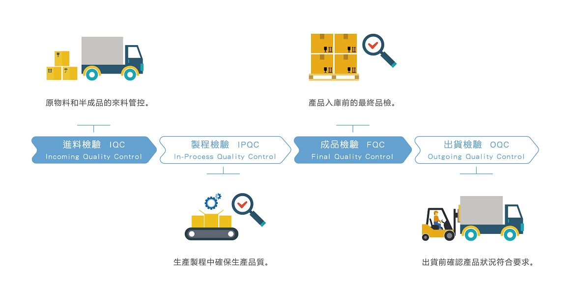 透過ISO品質管理系統嚴格管控每個製造環節,並設有獨立的實驗室、檢驗室,由專業的品管人員針對各個製程產品進行品質檢驗,透過層層品檢的管理方式,提供客戶穩定且高水準的產品品質。